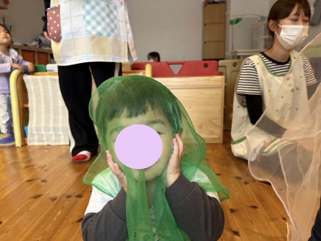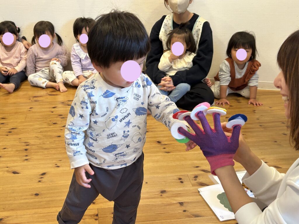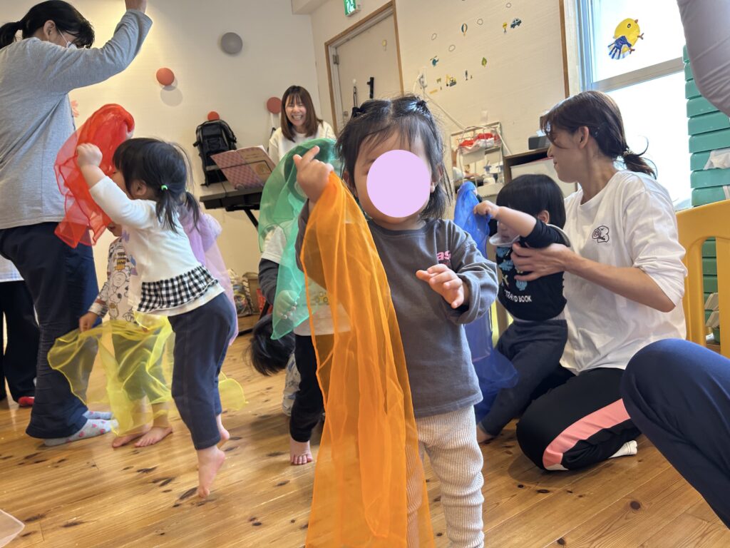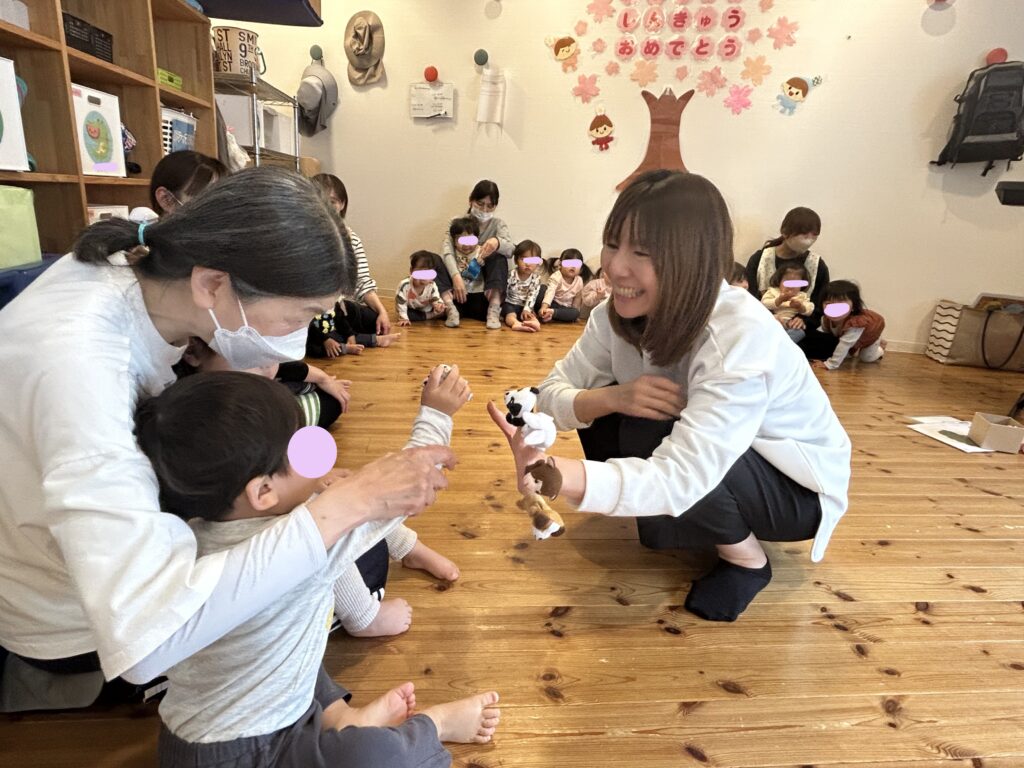 毎月2回、講師の先生が 『do re miリトミック』〜英語で遊ぼう〜に来てくれます。挨拶や生活の中で使う言葉、動物の名前など、少しずつ英語を使って話せるようになっていきます。季節ごとに遊びも変化していき、友だちと一緒に遊ぶ体験を積みながら、社会や協調性を育てていきます。
